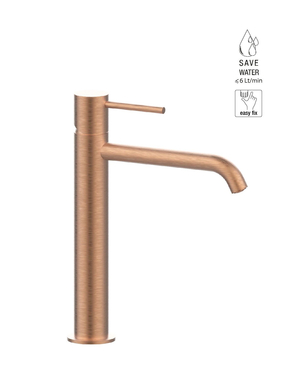 La grifería se produce en Italia con latón descincificado, cumpliendo las normativas más exigentes en materia de impacto medioambiental.