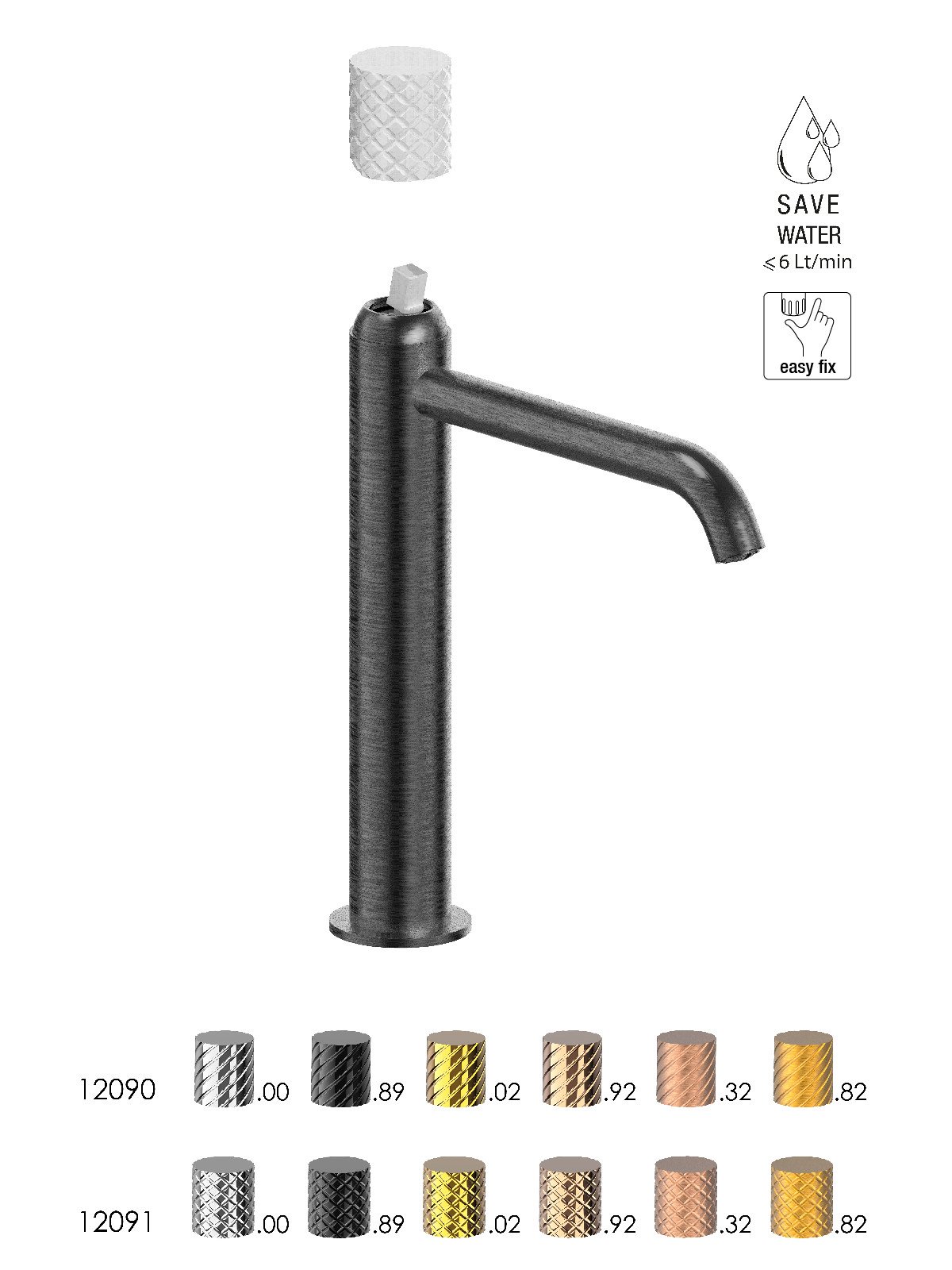 La grifería se produce en Italia con latón descincificado, cumpliendo las normativas más exigentes en materia de impacto medioambiental.