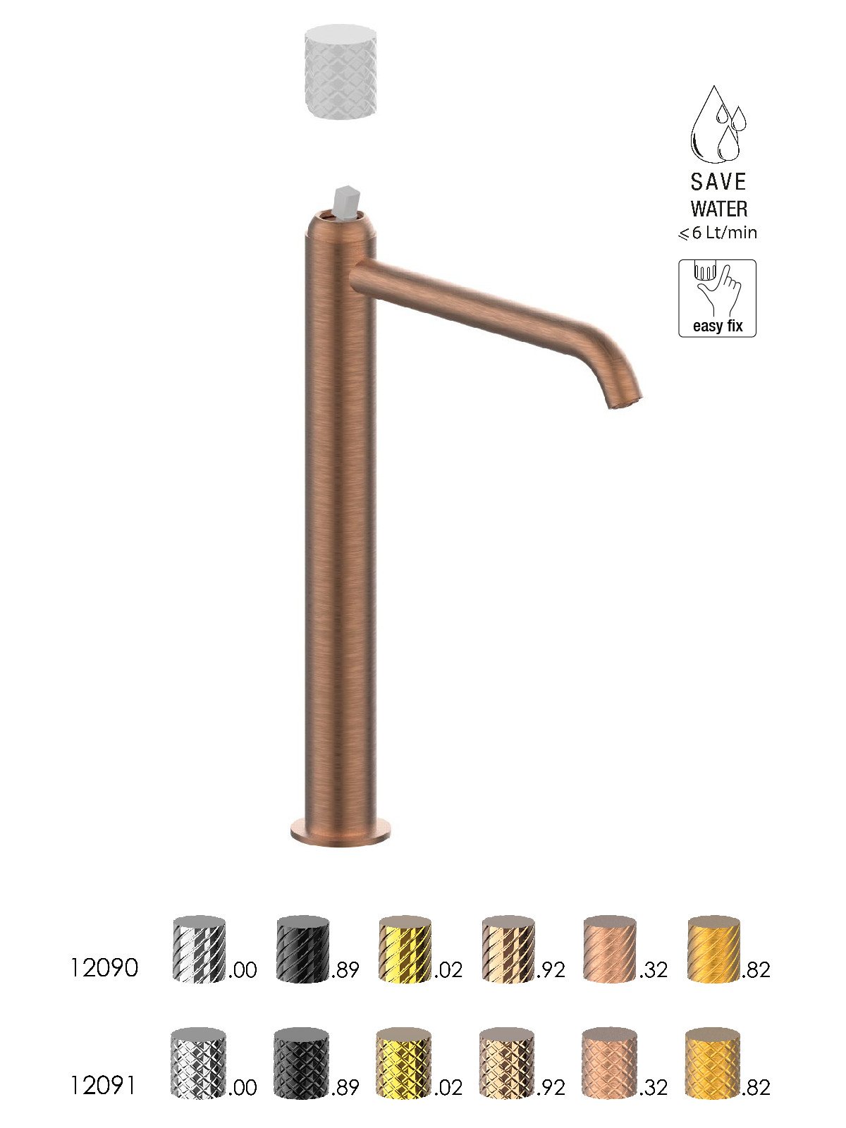La grifería se produce en Italia con latón descincificado, cumpliendo las normativas más exigentes en materia de impacto medioambiental.