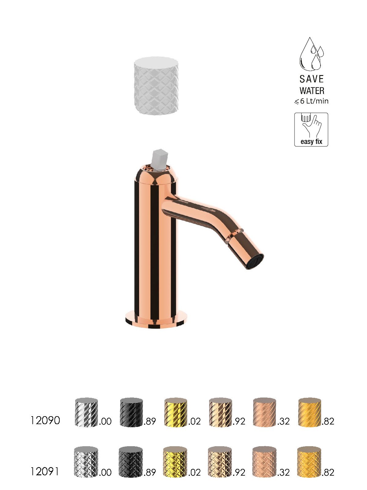 La grifería se produce en Italia con latón descincificado, cumpliendo las normativas más exigentes en materia de impacto medioambiental.