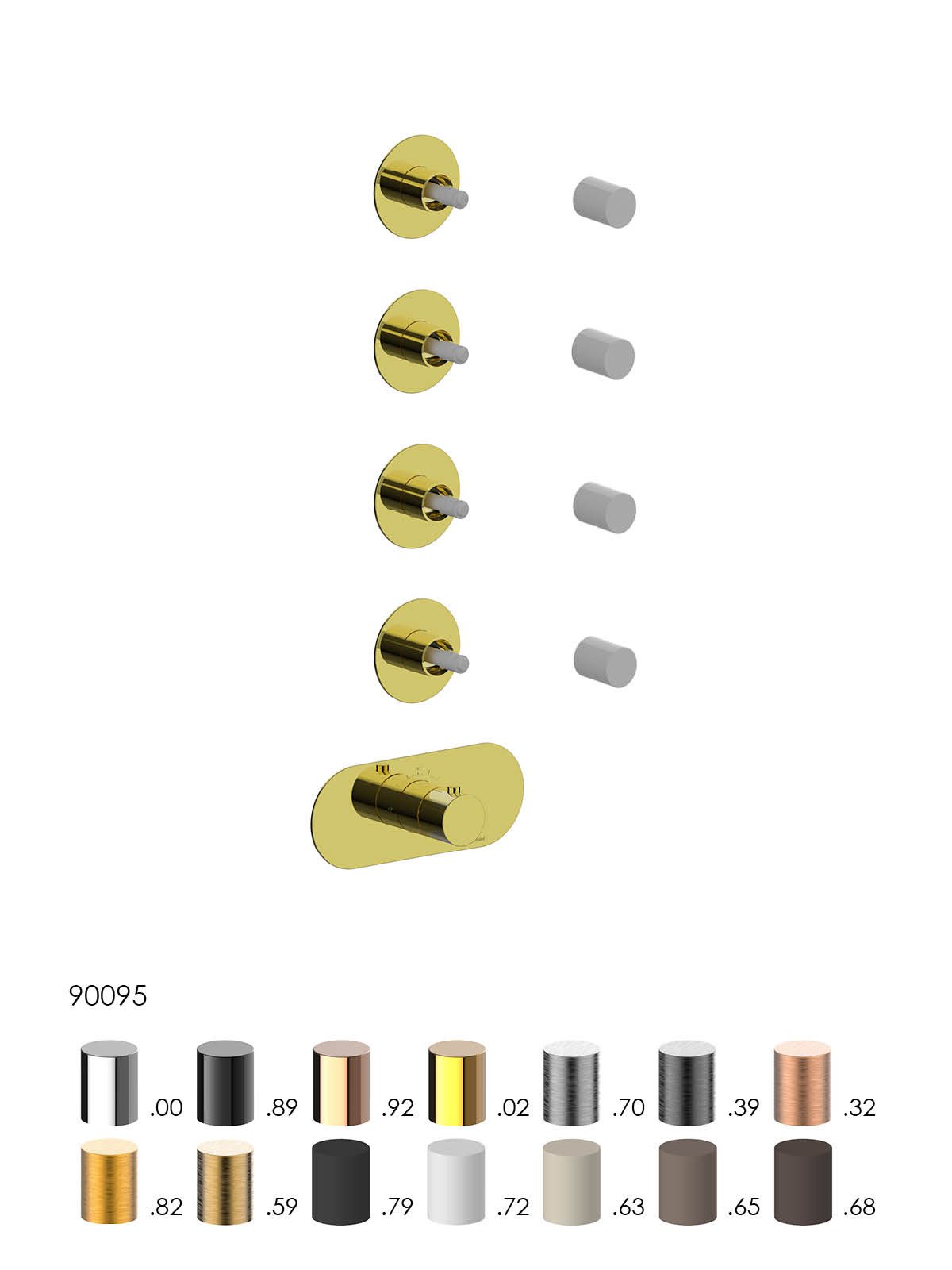 Solo parte exterior distribuidor termostático ducha 4 vías empot