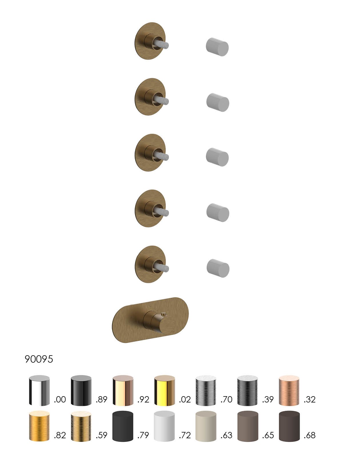 Solo parte exterior distribuidor termostático ducha 5 vías empot