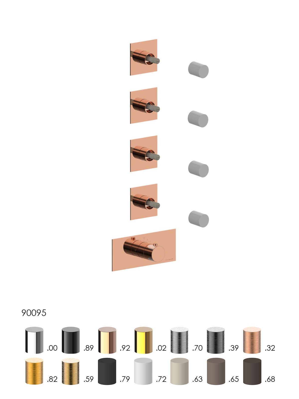 Solo parte exterior distribuidor termostático ducha 4 vías empot