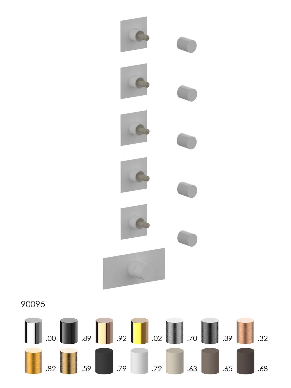 Solo parte exterior distribuidor termostático ducha 5 vías empot