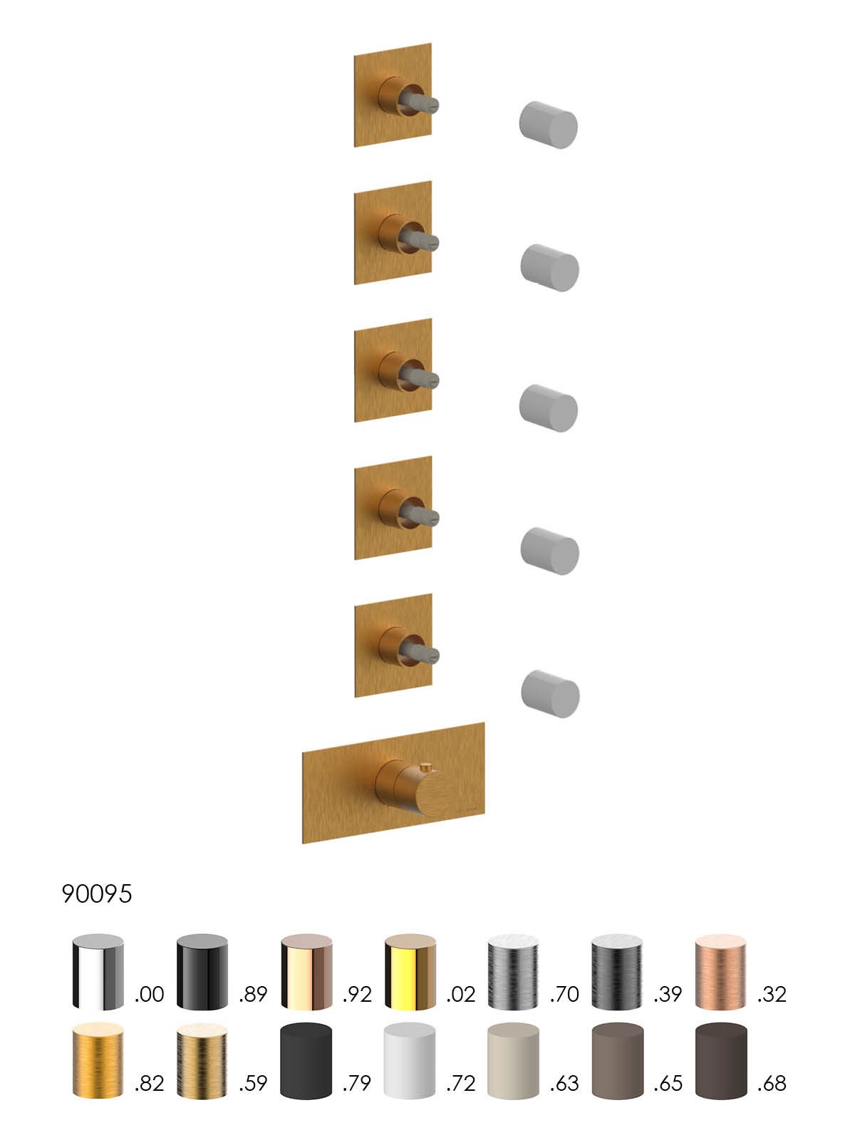 Solo parte exterior distribuidor termostático ducha 5 vías empot