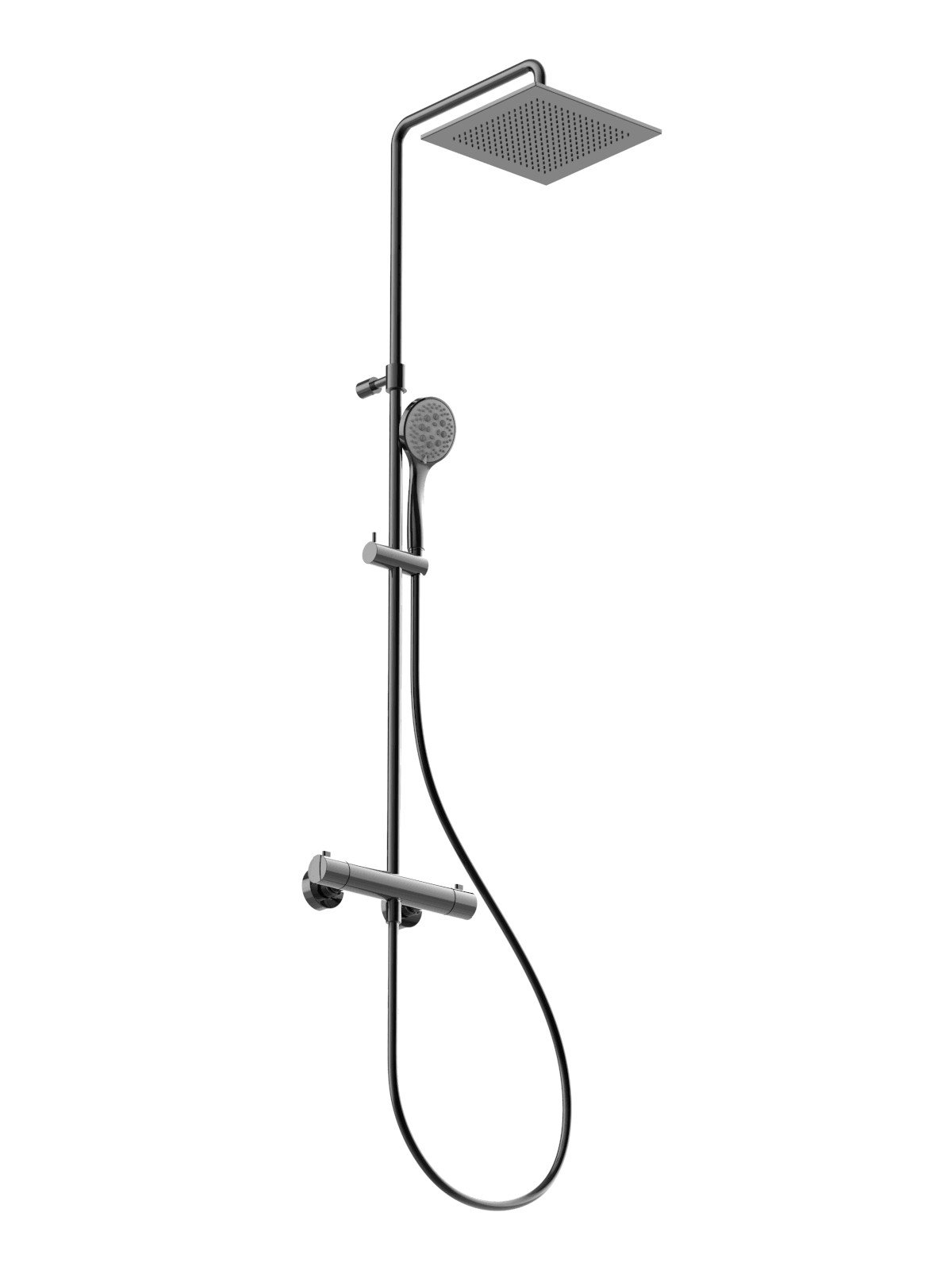 Mezclador exterior de ducha anticalcareo con cuerpo frio (anti-quemadura) con inversor integrado, columna rotatoria, flexible, teleducha y rociador anticalcareo en acero inoxidable 25x25 cm - Columna de ducha - Contemporary