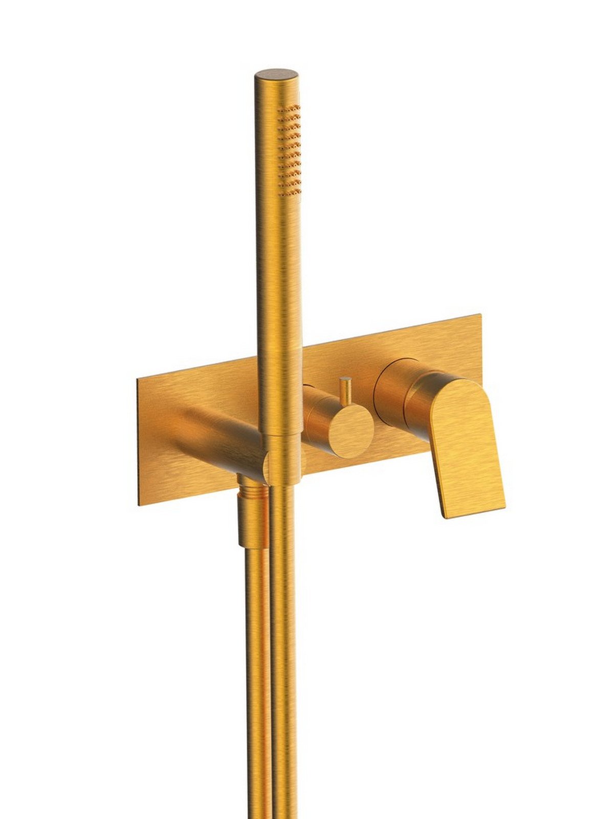 Solo parte exterior monomando 2 vias empotrado con inversor con discos ceramicos y teleducha, plancha de latón - Gintonic - Contemporary