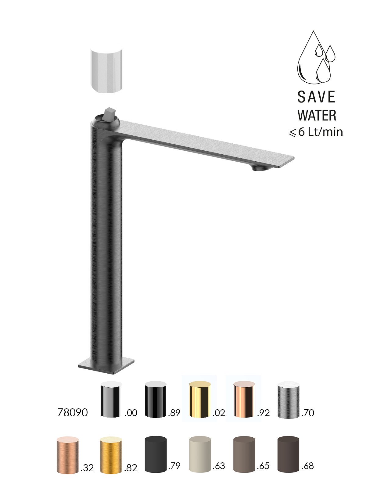 La grifería se produce en Italia con latón descincificado, cumpliendo las normativas más exigentes en materia de impacto medioambiental.