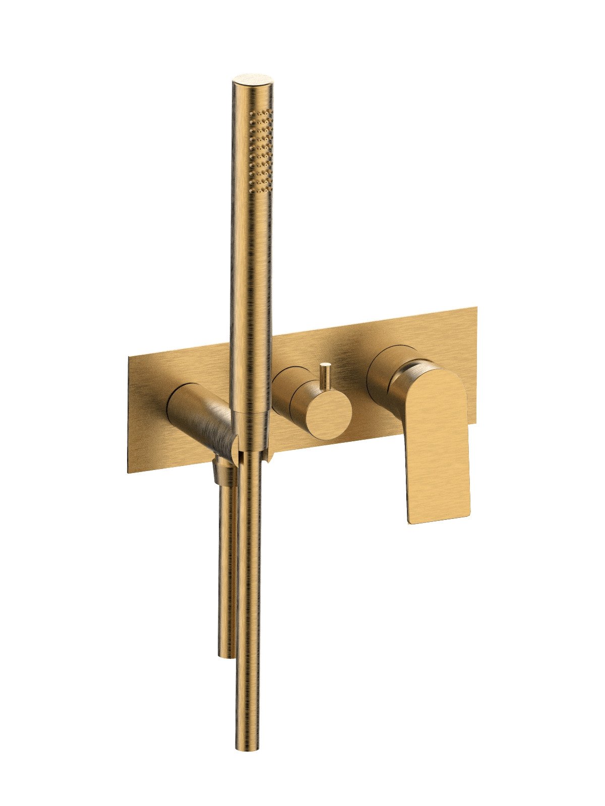 Solo parte exterior monomando 2 vias empotrado con inversor con discos ceramicos y teleducha, plancha de latón - Narciso - Contemporary