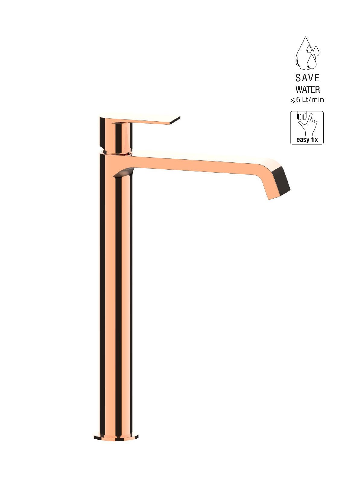 La grifería se produce en Italia con latón descincificado, cumpliendo las normativas más exigentes en materia de impacto medioambiental.