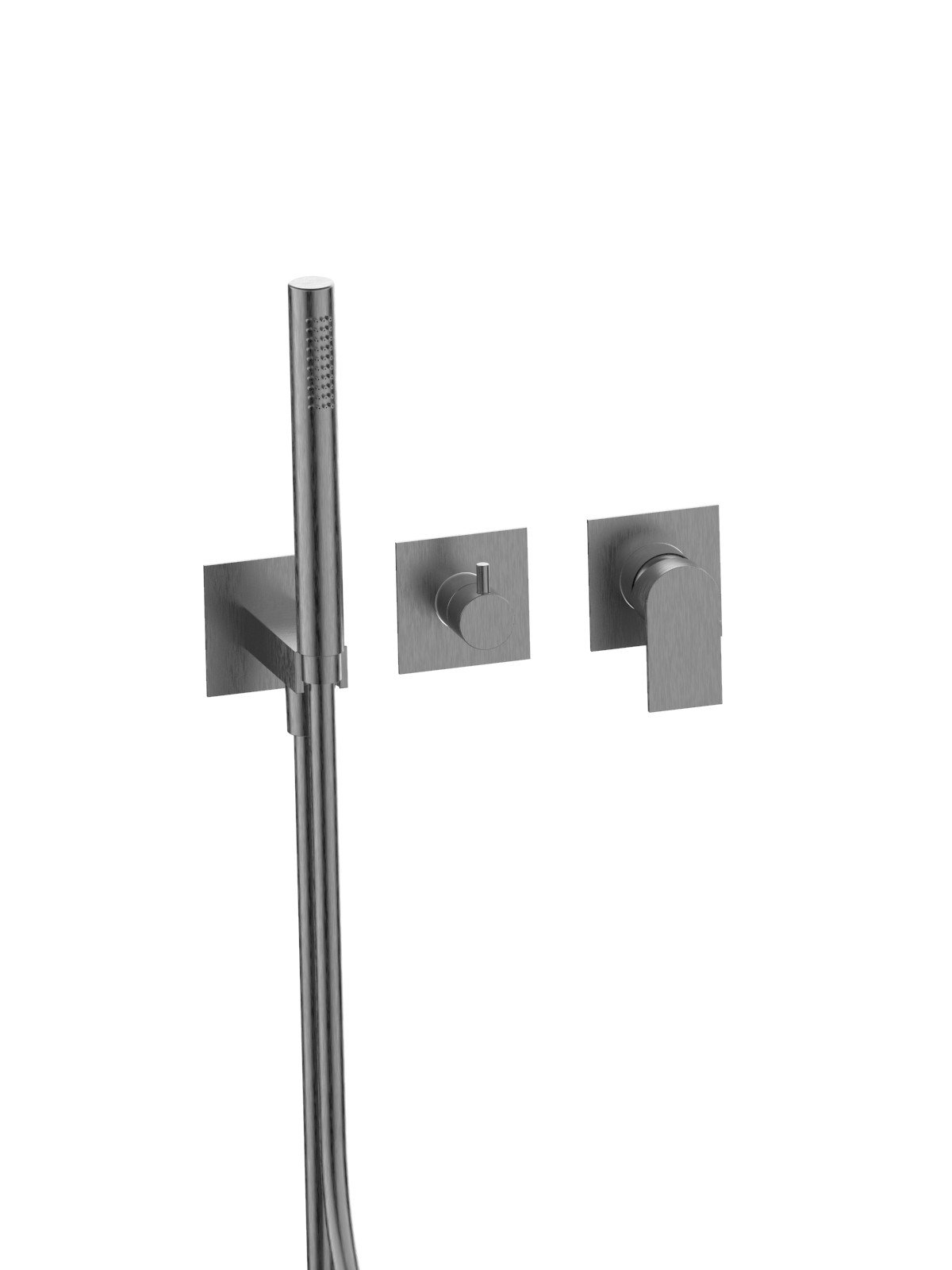 Solo parte exterior monomando empotrado baño con inversor 3 vias discos ceramicos y caño, planchas de latón - Tolomeo - Contemporary